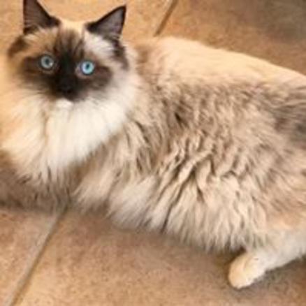 He is a seal point mitted BIG "purr-bucket" full of in-your-face personality. His temperament is absolutely fantastic which is passes to his babies. This talkative boy is super floppy and easy going, nothing phases him. He can't even be bothered to move for the vacuum if he is lying on the carpet, he figures you can just go around him. Poe is fascinated with water. He is all boy and acts like a dog in a cat suit. He is happy as long as he is in the same room as the mama of the house! He is a once in a lifetime pet. And he's mine all mine!!